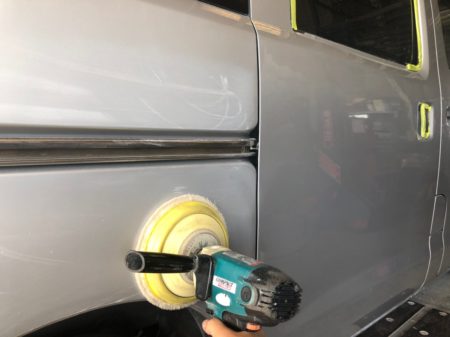 ▼ 最終仕上げに数種類のパフとコンパウンドを使い分け、ポリッシャーを使用して塗面を磨いて仕上げます。
