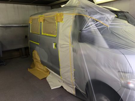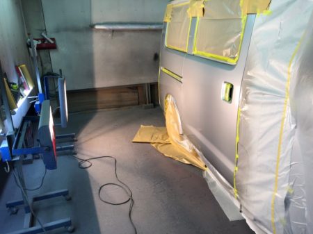 ▼ いよいよ塗装を行っていきますが、塗装は専用のブース(密閉された部屋)で行い、ホコリの付着などを防止します。