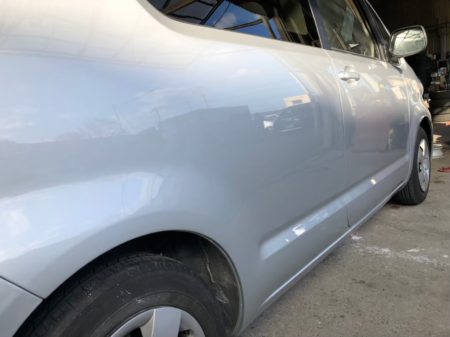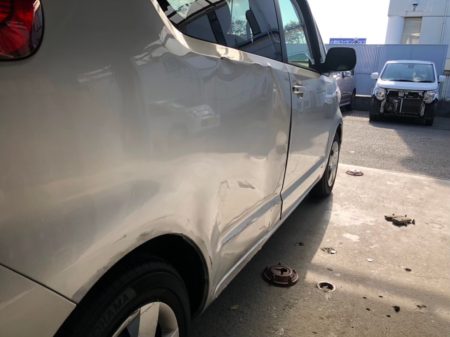 フロントドアドアからクオーターパネルにかけて広範囲に渡りへこんでしまってます。