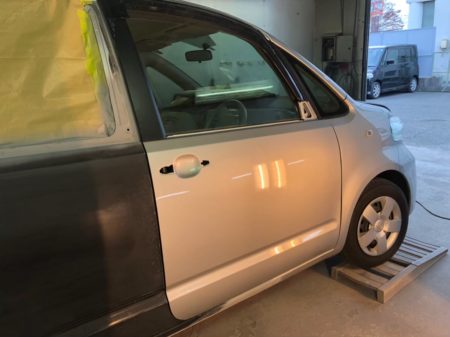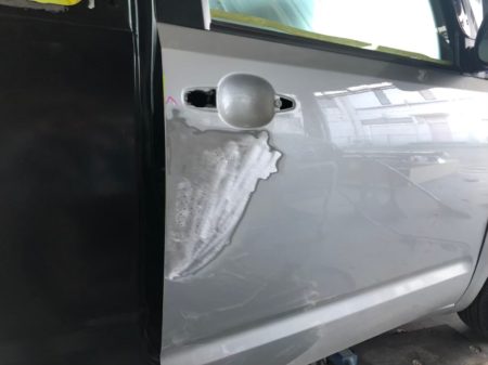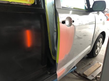 ▼フロントドアの方も後ろ側がへこんでいた場所を鈑金して