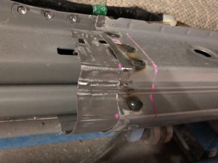 ▼車体側の切り継ぎ箇所に補強の為に鉄板で作った裏当てを入れて溶接します。