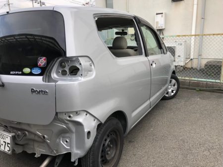 自宅のガレージの柱にぶつけてしまったとの事で修理入庫いたしました。
