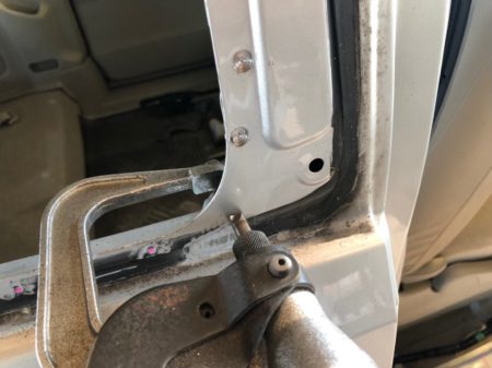 ▼修理の方向性が定まったらスポットミルと言うドリルでスポット溶接を削り取っていきます。