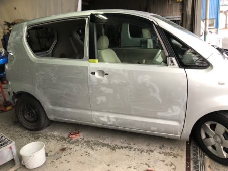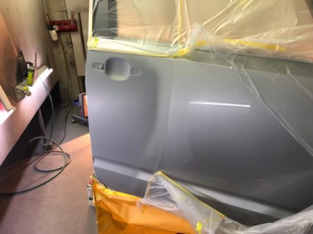▼上塗り塗装はフロントドアから先に仕上げていきます。