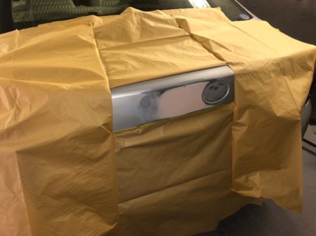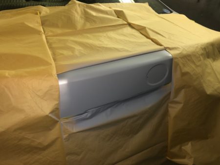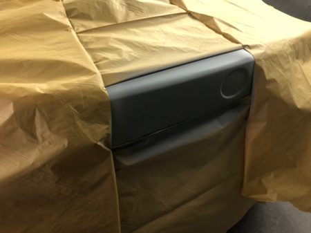 ▼仕上げパテも研磨し綺麗に脱脂し塗装ブースに移動しサフェーサー塗装用のマスキングをします。