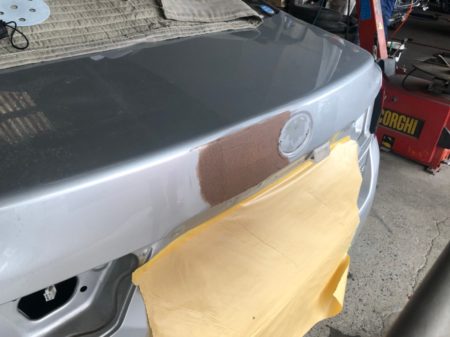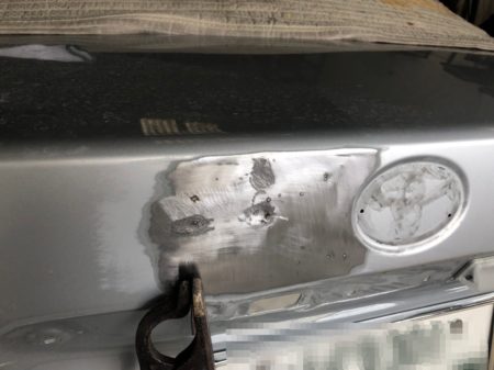 ▼トランク中央部をぶつけてしまったとの事で修理のご依頼です。