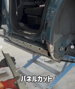 | 施工内容 | ロッカーパネル交換(パネルカット・新品取付・溶接・サフェーサー塗布・塗装) |
