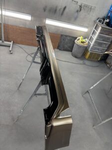 今回のポイントは、プレシャスレオブロンド(4Y1)のゴールドメタリック+ブラックのツートン塗装という点です。このゴールドメタリックは、塗料にメッキ調添加剤を混ぜて使う特殊な色になります。そのため、通常のメタリック塗装とは溶剤の配合が異なり、対応できる工場が限られます。